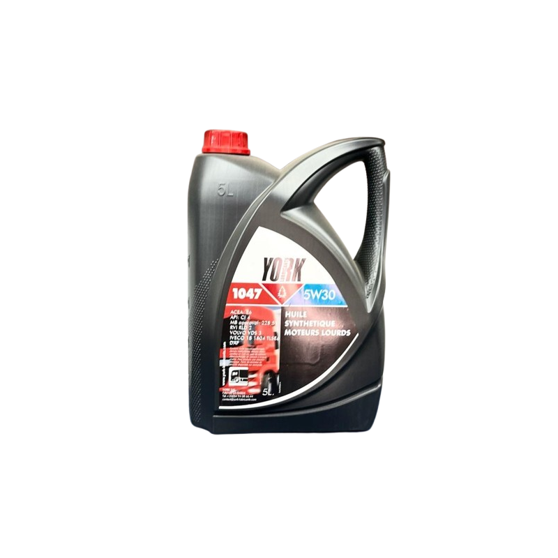 YORK 1047, 5W30 est un lubrifiant de synthèse UHPD de très haute performance spécialement formulé pour satisfaire les exigences des moteurs diesels lourds jusqu’à EURO 6.