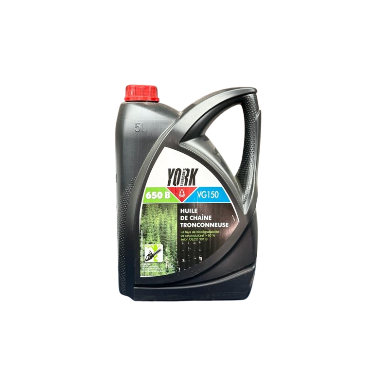 YORK 650 BIO, VG150 est une huile filante biodégradable formulée à partir d’huiles d’origine végétale et d’améliorants de performance soigneusement sélectionnés. Elle est conçue pour protéger l’environnement. Le filant naturel de l’huile YORK 650 BIO élimine la centrifugation du lubrifiant et permet ainsi un tronçonnage performant.