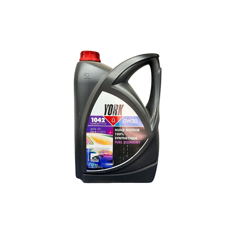 YORK 1042 SAE 0W30 est un lubrifiant moteur synthétique « LOW SAPS » de très haute performance, conçu pour les véhicules de tourisme ou utilitaires équipés de moteurs diesel ou essence Euro 5, Euro 6.