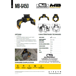 La pince de tri MB-G450 fonctionne sur les mini-pelles de 3 à 6 tonnes et peut être utilisée pour déplacer et manipuler des matériaux de différentes tailles et formes.
